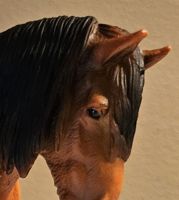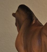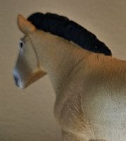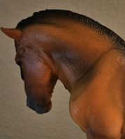 things to note on this model: this horse is showcasing the usual pangaré coat color with very dark brown mane, tail, and legs. even though primative markings are common with this breed, this model does not show any except for the dark lining on the ears. this figure displays a decent stocky shape, despite being slimmer in the belly than the real life example. it is handpainted and my figure has a few chips in the paint. additionally, the forelock and the spot where the tail meets the rear leg could use some attention.